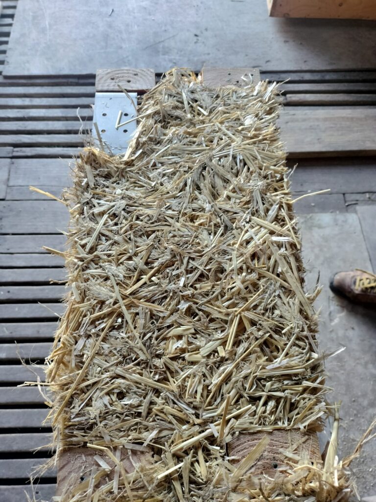 Manufacturers such as Hiberna Modular overcome this by eliminating the bale entirely. Using loose straw, precisely weighed to match the panel cavity volume, allows the target density to be achieved and guaranteed throughout the wall—control that simply isn’t possible with pre-made bales.